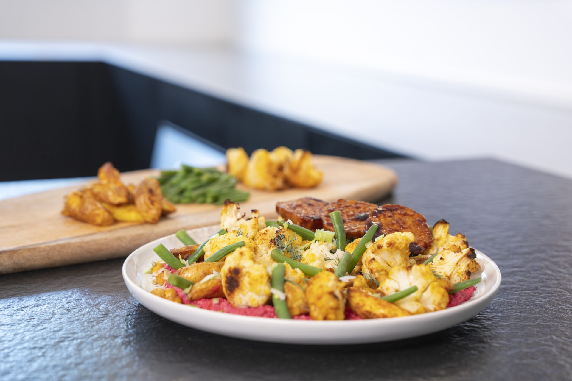 Geef je dag een boost met een 100% vegan maaltijd vol geroosterde rode biet, bloemkool, krielaardappelen en knapperige boontjes, verrijkt met kikkererwten voor extra power. De sticky tempeh zorgt voor een eiwitrijke, kruidige bite en de frisse kruiden en zaden maken het helemaal af. Een voedzame en verrassend smaakvolle plant-based maaltijd die body én balans op je bord brengt.