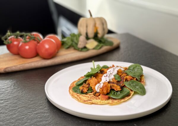 Mellow Spiced Puffs zijn hartige, luchtige eierkoekjes met geroosterde pompoen, verwarmende specerijen en een frisse toets van gember en limoen. Romige Griekse yoghurt en een vleugje spinazie zorgen voor extra zachtheid en kleur. Een voedzame, kruidige maaltijd die je energie geeft en tegelijk comfort biedt.